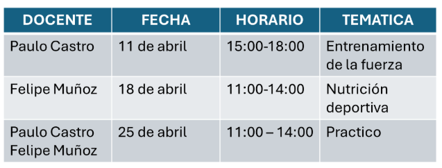 Este curso entrega a los alumnos una comprensión integrada y aplicada del entrenamiento de la fuerza y la nutrición deportiva como herramientas clave para la reducción de grasa corporal, el control del peso y la optimización metabólica, tanto en contextos clínicos como deportivos.